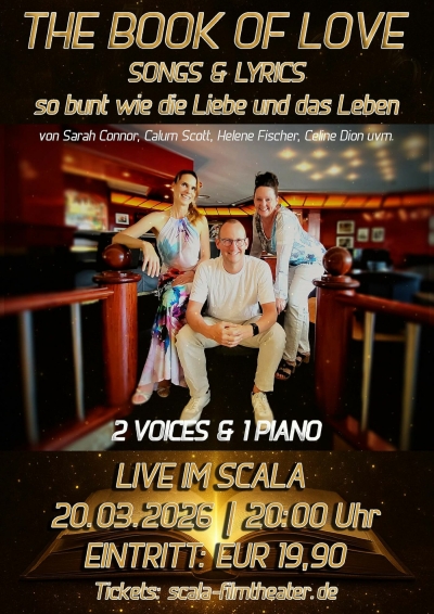 Karten / Info unter: https://www.scala-filmtheater.de/detail/122428/The%20book%20of%20love
